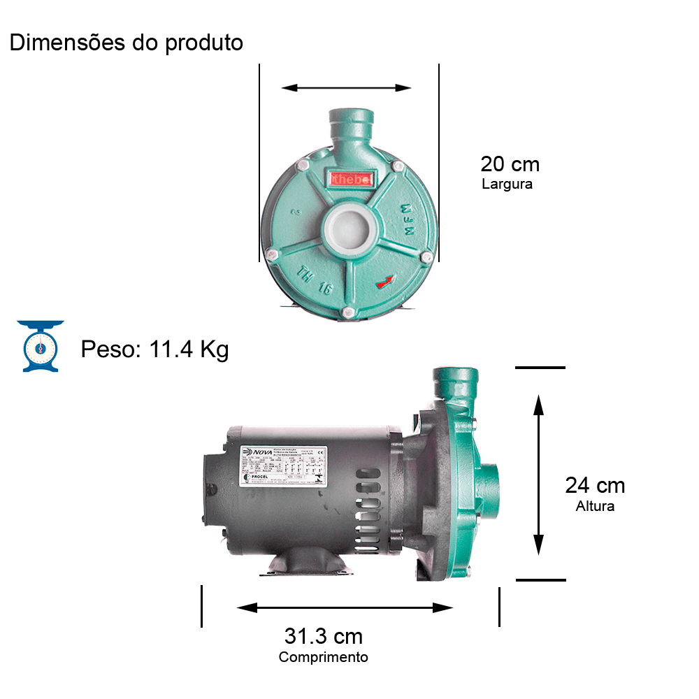 Bomba Monoestágio Th-16 Nr 1/2 Cv Rotor 102mm Trifásico Motor Nova Ip21 220/380v